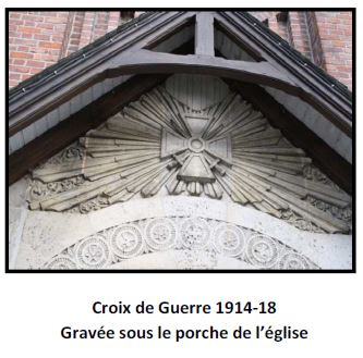 Mais l’église est le sujet ici, et en 1921 la commune adhère à la Coopérative de reconstruction des églises du Diocèse. Le 22 Novembre 19 22 un projet de reconstruction est présenté par l’architecte de la commune Mr Léry. Le gros œuvre est reçu le 30 Juin 1926, et l’aménagement intérieur se fait au fur et à mesure de l’arrivée des crédits. L’autel est offert par les Demoiselles Lepoivre. Les vitraux et le mobilier sont installés en 1928 et 1929. En 1928 l’église reçoit aussi un paratonnerre et le clocher est équipé d’une horloge. Il est à note r ici que le clocher est en retrait d’environ 2 mètres par rapport à son emplacement de 1616.